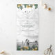 Éblouissez vos invités avec cette élégante invitation de mariage à thème tropical tout-en-un avec de beaux feuilles aux faux ananas en feuille d'or sur un arrière - plan en marbre blanc avec carte postale RSVP détachable. Ajoutez simplement les détails de votre événement sur ce modèle facile à utiliser et ornez cette carte avec votre photo préférée pour en faire une invitation unique.