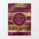 L'or et la bordeaux frappent et confetti triplent faire-part de mariage. Ce magnifique design présente des coups de pinceau en bordeaux, or et confettis. Votre texte est dans un cadre rouge bordeaux avec une bordure dorée. Il est parfait pour un mariage d'automne ou d'hiver.