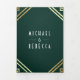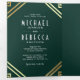 Invitation Trois Volets Mariage de code QR Emerald Gold Art Déco géométriq