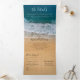 Invitation triptyque estivale élégante tout-en-un avec un décor de plage tropicale avec du sable et l'océan bleu, vos détails de mariage, une invitation de mariage et une carte postale de choix de menu de réponse pour vos invités à découper et renvoyer.