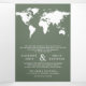 Éblouissez vos invités avec cette élégante invitation de mariage à thème voyage avec de beaux feuilles et typographie moderne avec carte du monde blanc. Ajoutez simplement les détails de votre événement sur ce modèle facile à utiliser et ornez cette carte avec vos photos préférées pour en faire une invitation unique.