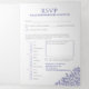 L'art botanique à feuilles dessinées à la main mariage l'invitation tout en un. Personnalisez ce faire-part de mariage de réponse détachable avec vos propres détails de cérémonie de mariage, l'horaire, l'hébergement et d'autres informations ainsi que les options de repas, les réponses. Simple design de feuilles violettes bleues entourant vos propres initiales monogrammes sur un arrière - plan blanc. Autres couleurs et articles mariages correspondants disponibles. © Dessin et dessin de la feuille d'origine par Sarah Trett pour www.mylittleedenweddings.com sur Zazzle.