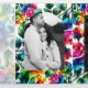 Invitation Trois Volets Mariage Floral Vibrant Roses Arc-en-ciel Noir et B