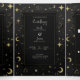 Invitation Trois Volets Mariage Moderne Céleste Lune Étoiles Noir & Or