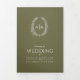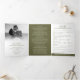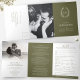 Invitation Trois Volets Mariage ovale monogramme RSVP olive vert blanc