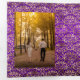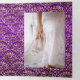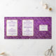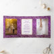 Cartes d'invitation de mariage Tri-Fold violet et or personnalisables avec 2 photos en papier damassé