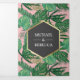 Éblouissez vos invités avec ce faire-part de mariage unique avec de beaux feuilles tropicaux et des bordures de feuille d'or faux avec une typographie élégante. Ajoutez simplement les détails de votre événement sur ce modèle facile à utiliser et ornez cette carte avec votre photo préférée pour en faire une invitation unique.