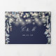 Un élégant tout en un faire-part de mariage triplé avec votre photo spéciale, lumières à cordes, initiales monogrammes, et une cascade de feuillage fleuri fleur sauvage renfermant vos détails mariages sur un arrière - plan bleu marine. L'invitation comprend les détails de votre invité de célébration et une carte RSVP détachable. Conçu par Thisisnotme©