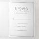 Un simple modèle tout-en-un avec carte rsvp et carte d'enceinte, ce qui rend cette suite d'invitation pratique et économique. Le faire-part de mariage comporte votre monogramme dans un cercle en haut et les détails de votre mariage entouré d'une mince bordure avec vos noms sont dans une police de script manuscrite élégante. L'arrière de l'hôtel comprend votre photo préférée. Tous les éléments de conception sont gris moyen et peuvent être modifiés dans l'outil d'édition de conception. La carte postale RSVP a votre adresse postale au dos et vos invités vous coupent et vous renvoient un courriel. REMARQUE : L'affranchissement de première classe est obligatoire pour la carte postale RSVP. Les timbres de carte postale ne suffiront pas en raison de la taille. La disposition classique et traditionnelle en fait un design idéal pour un mariage formel.