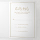 Un simple modèle tout-en-un avec carte rsvp et carte d'enceinte, ce qui rend cette suite d'invitation pratique et économique. Le faire-part de mariage comporte votre monogramme dans un cercle en haut et les détails de votre mariage entouré d'une mince bordure avec vos noms sont dans une police de script manuscrite élégante. L'arrière de l'hôtel comprend votre photo préférée. Tous les éléments de conception sont en noir et faux or et peuvent être changés dans l'outil d'édition de conception. La carte postale RSVP a votre adresse postale au dos et vos invités vous coupent et vous renvoient un courriel. REMARQUE : L'affranchissement de première classe est obligatoire pour la carte postale RSVP. Les timbres de carte postale ne suffiront pas en raison de la taille. La disposition classique et traditionnelle en fait un design idéal pour un mariage formel.