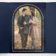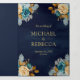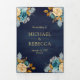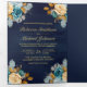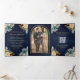 Invitation Trois Volets Marine Blue Cream Floral Gold QR Code Photo Mariag