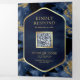 Invitation Trois Volets Marine Blue Gold Abstrait Liquide QR Code Mariage