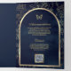 Invitation Trois Volets Marine Blue Line Art Gold Arch Mariage papillon