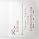 Faire-part de mariage moderne bordeaux triplé avec un design simple et minimal avec le nom de la mariée dans un script élégant et le nom du marié dans une police sans serif contemporaine. Vous trouverez ci-dessous, dans le coin inférieur droit, les détails de votre événement dans un agencement minimaliste. Le panneau central a votre photo préférée, le panneau droit est votre carte RSVP et le dos a vos détails supplémentaires.