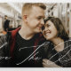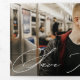 Ce design chic de sauvegarde de la date dispose d'une grande photo horizontale et d'un message d'accueil de script qui s'étend sur l'ensemble à l'extérieur de cette carte tri-pliée. Le message d'accueil sur le devant dit simplement "Enregistrer la date". A l'intérieur, il y a une autre photo horizontale à droite (qui s'étend sur deux panneaux) et à gauche, il y a le texte de la date. Ce design fait une déclaration chic et moderne. La mise en page multi-photo vous permet de télécharger deux de vos photos préférées.