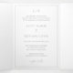 Elégante invitation de mariage triplée avec une mise en page classique avec votre monogramme avec une combinaison de typographie de script et de polices serif traditionnelles. Ce design simple va bien avec n'importe quel style de mariage.