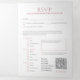 Bouillie rougie rousse rose pâle, dessinée à la main, feuilles d'art botanique mariage de l'invitation tout-en-un. Personnalisez ce faire-part de mariage de réponse détachable avec vos propres détails de cérémonie de mariage, l'horaire, l'hébergement et d'autres informations ainsi que les options de repas, les réponses et un code QR pour les informations en ligne ou la réservation. Un design simple de feuilles encerclant vos propres initiales monogrammes et sur un rose blanc et poussiéreux. Autres couleurs et articles mariages correspondants disponibles. © Dessin et dessin de la feuille d'origine par Sarah Trett pour www.mylittleedenweddings.com sur Zazzle.