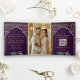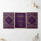 Invitation Trois Volets Motif de Peacock d'or violet Floral Indien Mariage