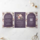 Invitation Trois Volets Neutral Taupe Floral QR Code Dusty Purple Wedding