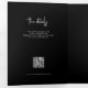 Noms de calligraphie manuscrite minimaliste simple moderne tendance noire modèle d'invitation de mariage à budget tri-fold tout-en-un avec 2 photos, RSVP et détails et avec des codes QR de numérisation (générés automatiquement avec votre adresse Web) avec un script blanc chic sur une superposition sombre et d'humeur. ++++++++++++ Facile à personnaliser avec une ou deux photos personnalisées (vous pouvez télécharger la même photo des deux côtés) et les informations d'invité! L'invitation convient aux mariages classiques formels minimalistes contemporains.