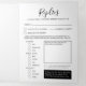 Monotone graphique petit coeur texte mariage tout-en-un invitation et réponse. Personnalisez ce faire-part de mariage de réponse découpé avec vos propres détails de cérémonie de mariage, l'horaire, l'hébergement et d'autres informations ainsi que les options de repas et la carte de réponse. Design de texte graphique simple avec de petits coeurs en noir et blanc classique. Autres couleurs et articles mariages correspondants disponibles. © Design original par Sarah Trett pour www.mylittleedenweddings.com sur Zazzle.