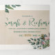 Célébrez votre histoire d'amour avec cet élégant faire-part de mariage floral, avec des roses d'aquarelle douce, une végétation luxuriante d'eucalyptus et des accents d'or délicats. L'invitation est placée contre un arrière - plan en ivoire texturé avec un filigrane monogramme personnalisé subtil — personnalisez les initiales pour refléter les noms du couple et ajouter une touche romantique unique. Cette conception d'invitation allie beauté botanique intemporelle et personnalisation moderne, ce qui en fait un lieu idéal pour les mariages de jardin, les lieux rustiques ou tout cadre romantique. Entièrement modifiable avec vos noms, date du mariage, lieu et détails. Associez-le avec les cartes RSVP correspondantes, les insertions de détails, les étiquettes de faveur, les numéros de table, et plus encore — tout cela fait partie de notre suite Blush & Eucalyptus Mariage coordonnée.