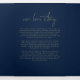 Photo classique Marine Bleue et Or QR Code Mariage de chronologie. Une invitation tout en un, détails et RSVP avec. Les mots Le Mariage de, Détails, Timeline Réception et Notre Histoire d'Amour sont dans un script de style manuscrit. Personnalisez facilement le reste du texte à vos propres détails. Remplacez l'exemple d'image par le vôtre. Ajoutez votre code QR à votre site Web mariage, ce qui en fait une option pratique pour vos invités à RSVP et voir tous les détails sans avoir besoin de RSVP séparé et de cartes de détails. Votre code QR sera généré automatiquement pour mettre à jour l'exemple de code dans la conception, lorsque vous changez simplement l'exemple d'URL dans le modèle avec votre propre URL de site mariage.