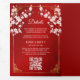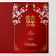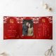 This traditional bilingual Chinese wedding invitation features pretty pink cherry blossoms, a Chinese gold frame and a gold double happiness symbol on a ruby red shimmering background. Bride and groom names in an elegant classic script. Chinese wedding invitation or tea ceremony invitation. With your photo in the center of the tri-fold wedding invitation and a traditional Chinese text at the right inner side. At the backside are the details and a scannable qr code for your wedding website.