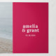 Invitations de mariage triplées de style moderne avec une disposition simple et minimale avec vos noms dans une police rétro super. Vous trouverez ci-dessous les détails de votre événement dans une police sans serif avec votre code QR (facultatif) pour que les invités puissent scanner et facilement RSVP en ligne. Le panneau de gauche a votre programme d'événements, le panneau de droite a vos détails supplémentaires et le fond a votre photo préférée. Les couleurs vives sont le rose Viva Magenta vivant. Le code QR peut être supprimé et les polices / couleurs peuvent être modifiées dans l'outil d'édition de conception.