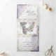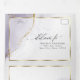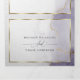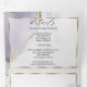 Aquarelle marbrée douce violet poussiéreux et or avec des reflets dorés clinquants - chaque section est mise en valeur par un encadrement superposé blanc doré et transparent, au centre de la face avant se trouve votre photo accentuée d'un cadre doré et derrière la superposition blanche transparente pour un attrait ésotérique, un magnifique design abstrait moderne pour une invitation de mariage tout-en-un complète avec un RSVP de choix de repas détachable et pré-adressé pour que vos invités puissent facilement le renvoyer par courrier - une invitation de mariage tout-en-un époustouflante -