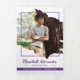 C'est l'invitation audacieux parfait pour votre diplômé qui se prépare à entrer dans le monde. L'avant présente votre photo principale préférée dans un cadre déchiqueté abstrait avec son nom dans un script écrit à la main ci-dessous. Le premier rabat présente tous les détails de la cérémonie et de la fête. A l'intérieur, il y a de l'espace pour deux autres photos, avec leur liste de réalisations et de plans futurs. Design disponible en couleurs scolaires de rouge, orange, violet, vert, bleu, orange brûlé, marron et noir. Produits correspondants disponibles.
