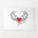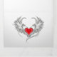 Coeur rouge peint de façon artistique avec ailes d'ange gris, décoré de contour lisse noir.