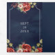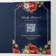 Invitation Trois Volets Red Roses Floral Frame Marine bleu QR Code Mariage