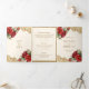 Invitation Trois Volets Red Roses Gold Lace Cream QR Code Mariage photo