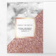 Éblouissez vos invités avec cette élégante faire-part de mariage tout-en-un dotée d'une belle parties scintillant en or faux rose et d'un design en marbre avec carte RSVP détachable. Ajoutez simplement les détails de votre événement sur ce modèle facile à utiliser et ornez cette carte avec votre photo préférée pour en faire une invitation unique.