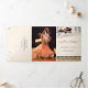 Faire-part de mariage tout-en-un romantique à trois places avec deux de vos photos préférées. Ce design montre un rose sur une feuille de musique avec des notes musicales stylisées et un clavier de piano. Magnifique pour toute personne qui aime la musique et/ou la danse.
