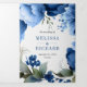 Invitation Trois Volets Royal Blue Floral Mason Jar QR Code Mariage