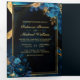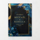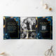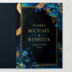 Invitation Trois Volets Royal Blue Gold Floral Marbre QR Code Mariage