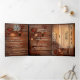 Tri-fold wedding invitation featuring two of your favorite photos framed by a rustic wood design with an old tree in autumn. The lanterns create a warm and cozy atmosphere. This is an all-in-one invitation, so you can also add wedding details as you would on an insert card and the last panel can be used as an RSVP card.