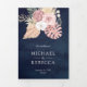 Éblouissez vos invités avec cet élégant invitation de mariage avec de belles fleurs roses poussiéreuses et des feuilles de palmiers séchés avec carte RSVP en ligne. Ajoutez simplement les détails de votre événement sur ce modèle facile à utiliser et décorez cette carte avec vos photos préférées pour en faire une invitation personnalisée unique.