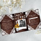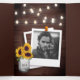 Éblouissez vos invités avec cette invitation de mariage rustique tout en un avec une belle dentelle blanche et des tournesols en pot de mason sur un arrière - plan en bois de grange vintage avec carte RSVP détachable. Ajoutez simplement les détails de votre événement sur ce modèle facile à utiliser et ornez cette carte avec votre photo préférée pour en faire une invitation unique.