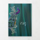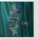 Elégante faire-part de mariage tri-pliée faite dans un look satiné turquoise, avec des graphismes de fioritures argentées et un paon coloré, sur le devant. Le milieu intérieur dispose d'une fente photo personnalisée pour la photo de la mariée et du marié et le devant de l'invitation a les monogrammes de la mariée et du marié. Personnalisez toutes les zones de texte avec vos informations mariages.