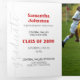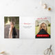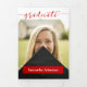 Un script élégant annonce votre diplômé sur votre photo préférée de fin d'études sur le devant. Bloc pour leur nom sur le devant, et tous les détails de la cérémonie à l'intérieur avec deux autres photos. Espace au dos pour un message de remerciement aux amis et à la famille. Conception disponible dans les couleurs de l'école rouge, orange, violet, vert, bleu, orange brûlé, bordeaux et noir. Produits assortis disponibles.
