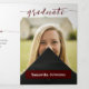 Un script élégant annonce votre diplômé sur votre photo préférée de fin d'études sur le devant. Bloc pour leur nom sur le devant, et tous les détails de la cérémonie à l'intérieur avec deux autres photos. Espace au dos pour un message de remerciement aux amis et à la famille. Conception disponible dans les couleurs de l'école rouge, orange, violet, vert, bleu, orange brûlé, bordeaux et noir. Produits assortis disponibles.