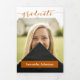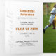 Un script élégant annonce votre diplômé sur votre photo de fin d'études préférée au recto. Bloc pour leur nom au recto, et tous les détails de la cérémonie à l'intérieur avec deux autres photos. Espace au verso pour un message de remerciement aux amis et à la famille. Conception disponible dans les couleurs de l'école rouge, orange, violet, vert, bleu, orange brûlé, bordeaux. Produits assortis disponibles.