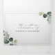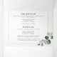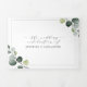 Un design simple et minimaliste avec des illustrations de branches d'eucalyptus sur chaque panneau. Tout cela dans une seule invitation vous économiserait de l'argent, pas besoin d'inclure des enveloppes RSVP, vos invités couperont le dernier panneau et vous le retourner comme carte postale.