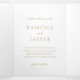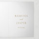 Élégant tout en un faire-part de mariage triplé avec une conception simple et minimaliste de faux or. Une disposition classique avec vos noms en gros caractères pour une touche moderne à cette invitation de style traditionnel. Le panneau de droite intérieur comporte deux codes QR. Ajoutez simplement votre URL au modèle et un code QR sera généré. Si vous préférez, vous pouvez supprimer les codes QR dans l'outil d'édition de conception. Cette faire-part de mariage est parfaite pour un mariage formel.