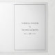 Elégante invitation de mariage avec un design simple et classique avec des polices serif traditionnelles et une bordure entourant les détails de votre événement.