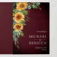 Éblouissez vos invités avec cette élégante invitation de mariage tout en un avec de beaux tournesols et des feuilles d'eucalyptus. Ajoutez simplement les détails de votre événement sur ce modèle facile à utiliser et ornez cette carte avec vos photos préférées pour en faire une invitation unique.