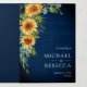 Invitation Trois Volets Sunflowers Eucalyptus QR Code Marine Mariage bleu